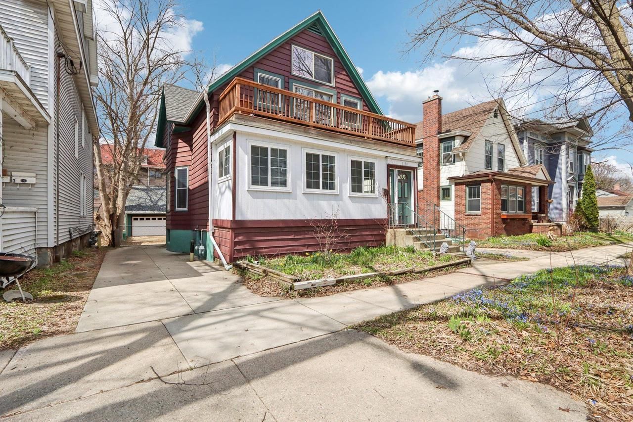 Exceptional east side residence just moments from the lake, parks, and downtown Madison, offering a rare blend of historic character and refined modern updates. This beautifully maintained home features a new detached 3-car garage (2021) with potential for future ADU/finished space above, updated electrical and plumbing (2018), and updated windows throughout much of the home. The remodeled kitchen offers an open-concept design with dining space and stainless steel appliances, while both full baths have been tastefully renovated. Upstairs, three spacious bedrooms feature soaring cathedral ceilings and abundant natural light. Rich in original charm with classic pocket doors on the main level?adding character and flexibility to define separate living spaces. Multiple outdoor living areas include an enclosed front porch with rooftop deck plus covered rear decks on both levels.