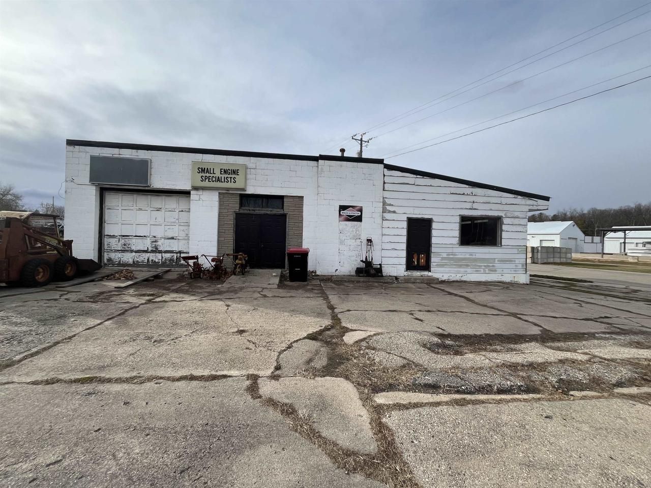 Shop offers a 28x36 work area, storage area, and separate area with woodburning stove for heat, and a 20x28 showroom/office with half bath. It includes 2 lots (2310422110464 and 2310422113463). Lot #23104221144464 which is a mechanics shop does have underground tanks but no contamination reported. Report is available. Can also be sold with home next door listed at $150,000. See mls #50318961.