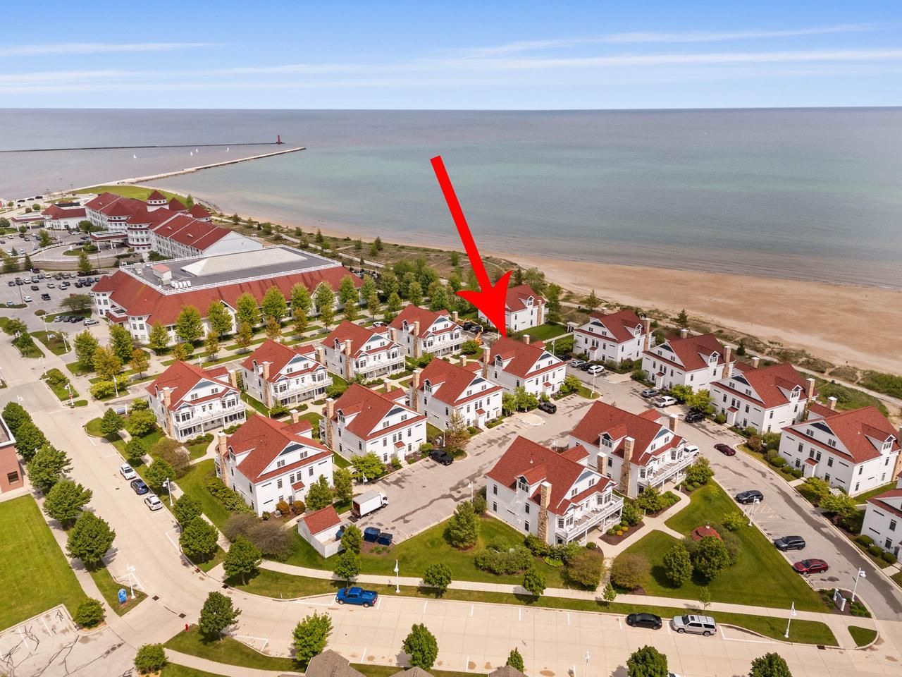 Welcome to 418 Beachfront Court your dream vacation getaway! Just 75 steps to beach! This 2 bedroom, 2 bath main floor unit (no stairs!) is located on South Pier in Sheboygan, a vibrant neighborhood and perfect vacation spot! A short walk to boutiques, fabulous dining, ice cream & coffee shops and even mini-golf! This condo has been a successful short term rental and is being sold furnished so it is ready to go! Cozy unit with a dining space and snack bar in kitchen. Spacious living room offers a gas fireplace. In unit laundry for convenience. 2 parking spots are included. Enjoy your private front porch patio for outdoor dining and lake breezes!
